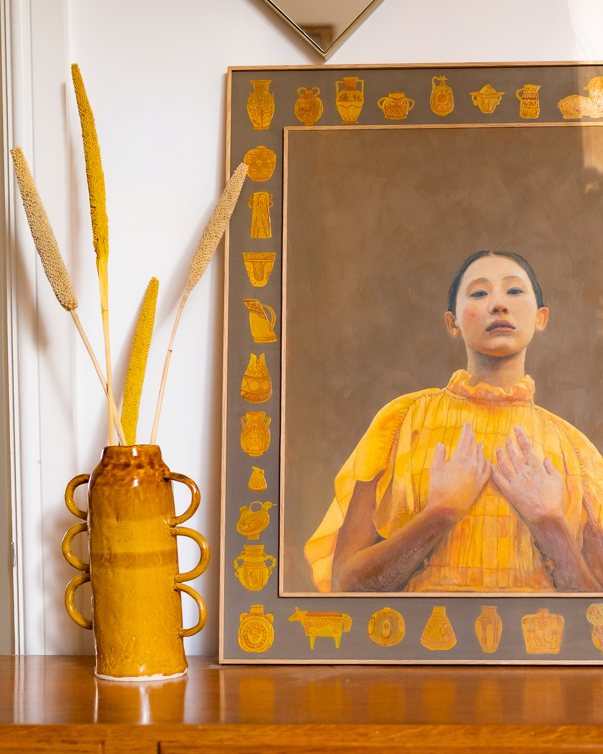 This vessel lives alongside the painting, gently leaning as it embraces imperfection and expanding boundaries. It is included in the purchase of the painting.